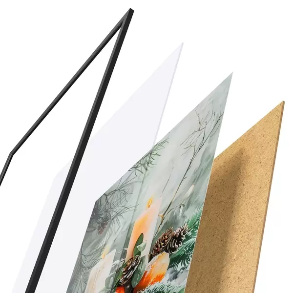 Постер складається з рами, оргскла, надрукованого зображення та підкладки з ДСП. Завдяки кріпленням на звороті плакат можна одразу ж повісити на стіну.