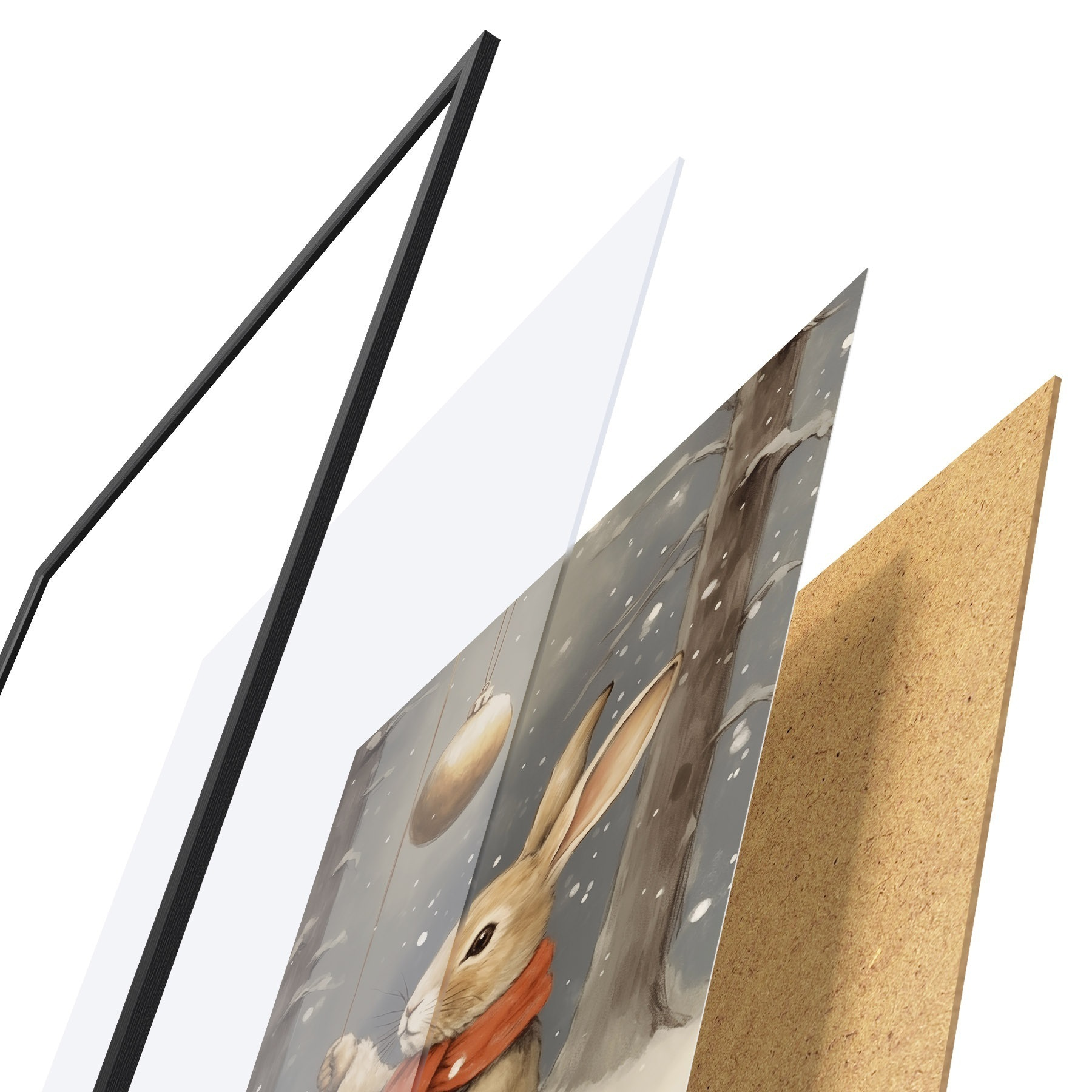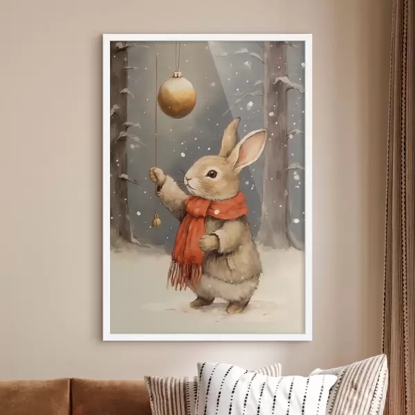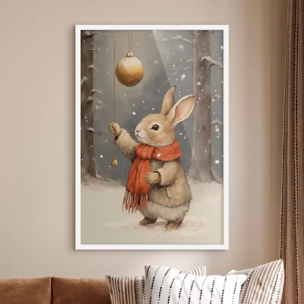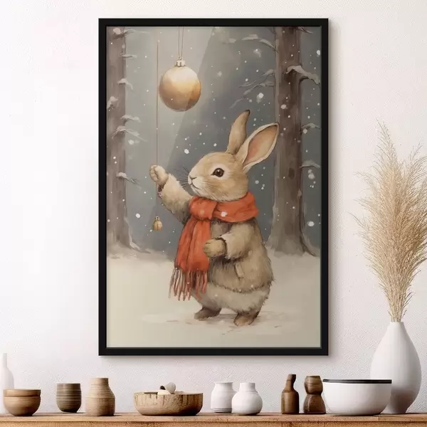 Постер на стіну Зимовий заєць з шарфом і ялинковою іграшкою Nr f46619