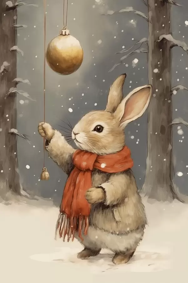 Постер на стіну Зимовий заєць з шарфом і ялинковою іграшкою Nr f46619