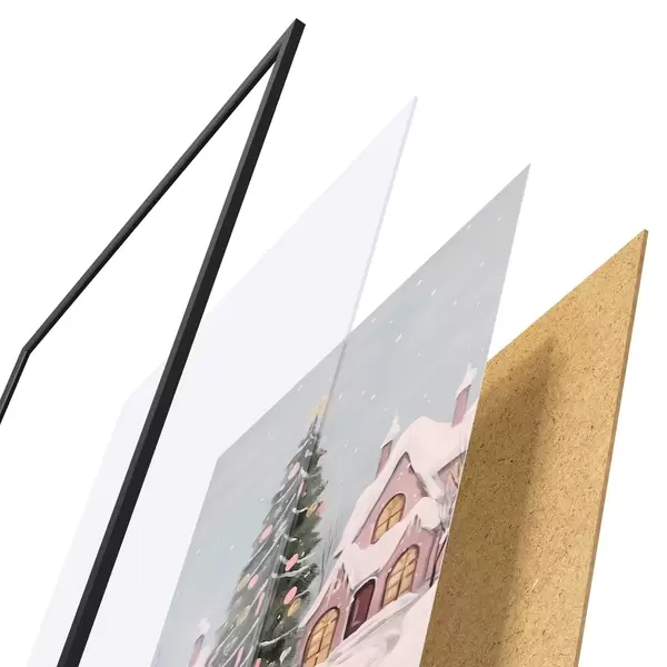 Постер складається з рами, оргскла, надрукованого зображення та підкладки з ДСП. Завдяки кріпленням на звороті плакат можна одразу ж повісити на стіну.