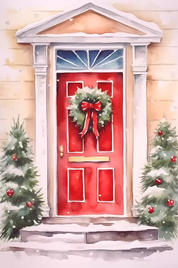 Постер на стіну Різдвяні двері з віночком Nr f46622