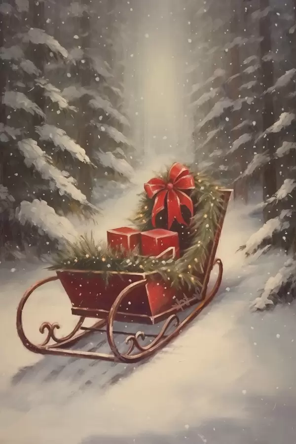 Постер на стіну Різдвяні сани з подарунками в засніженому лісі Nr f46630