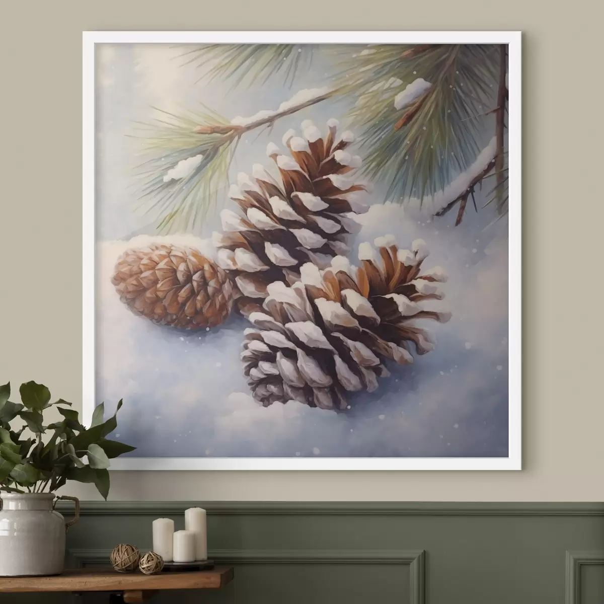 Постер на стіну Засніжені соснові шишки та гілки Nr f46631