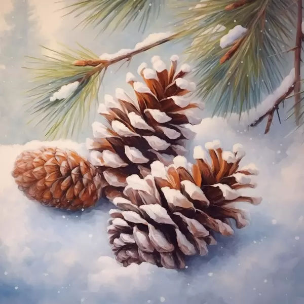 Постер на стіну Засніжені соснові шишки та гілки Nr f46631