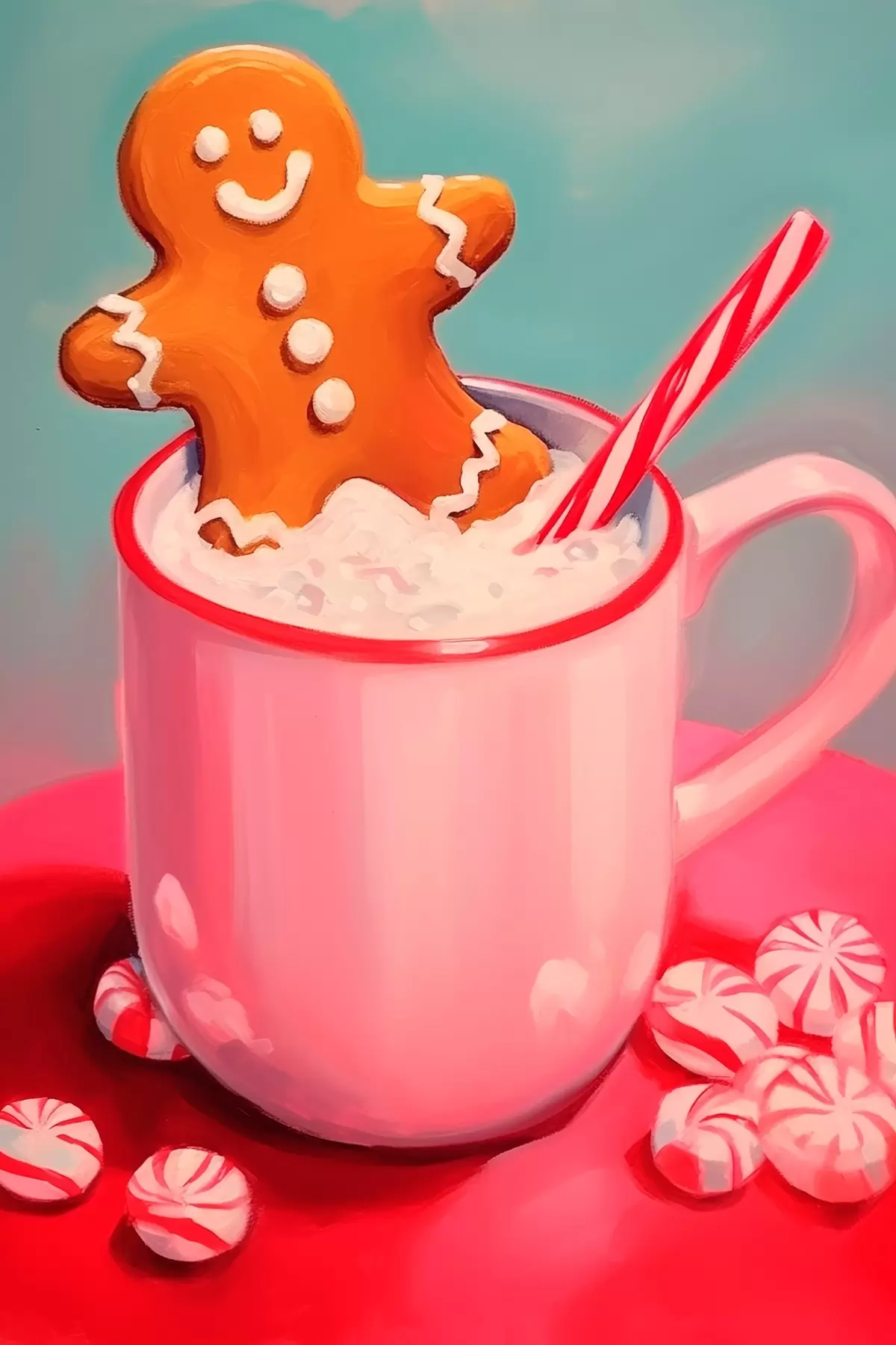 Постер на стіну Пряниковий чоловічок у чашці гарячого шоколаду Nr f46635