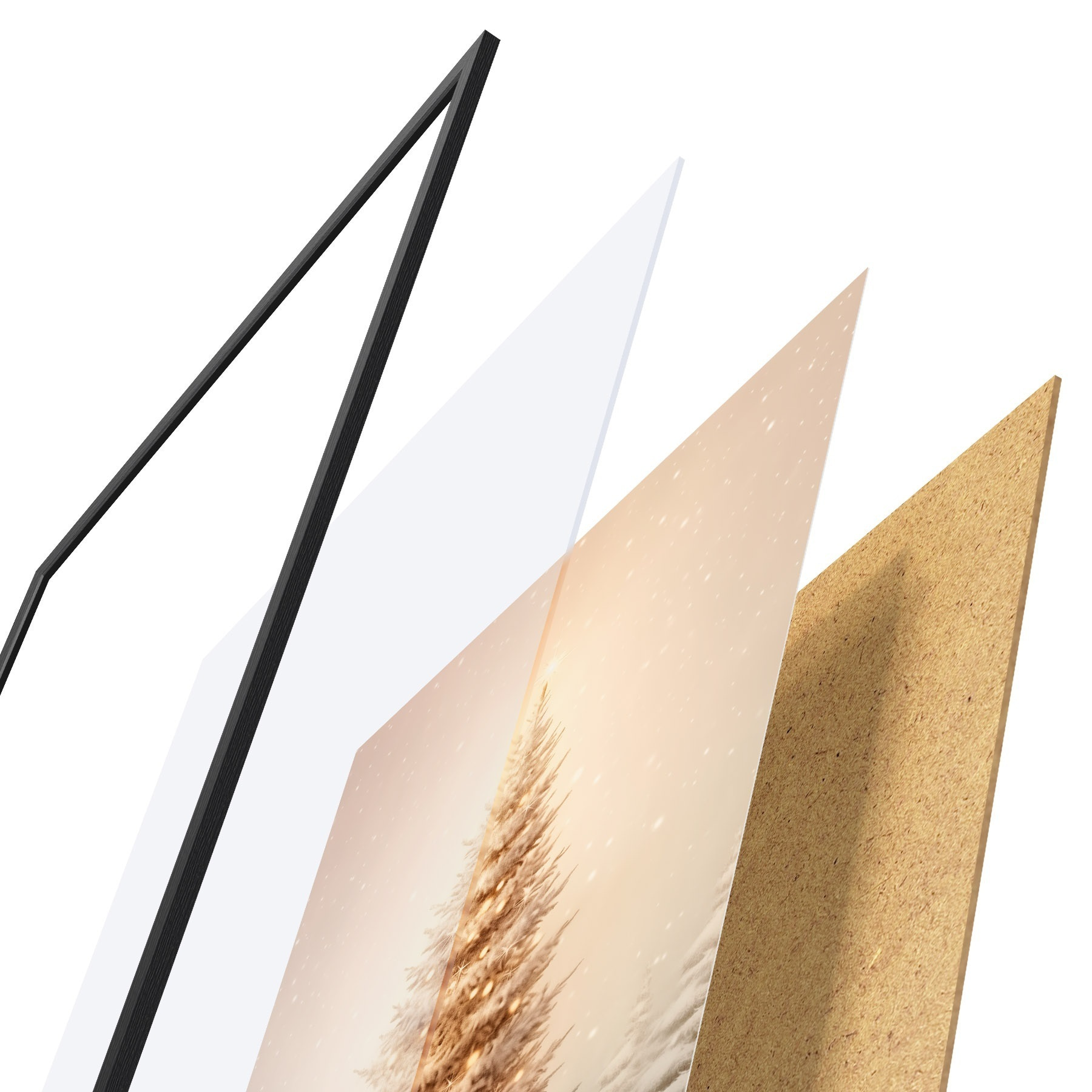 Постер складається з рами, оргскла, надрукованого зображення та підкладки з ДСП. Завдяки кріпленням на звороті плакат можна одразу ж повісити на стіну.