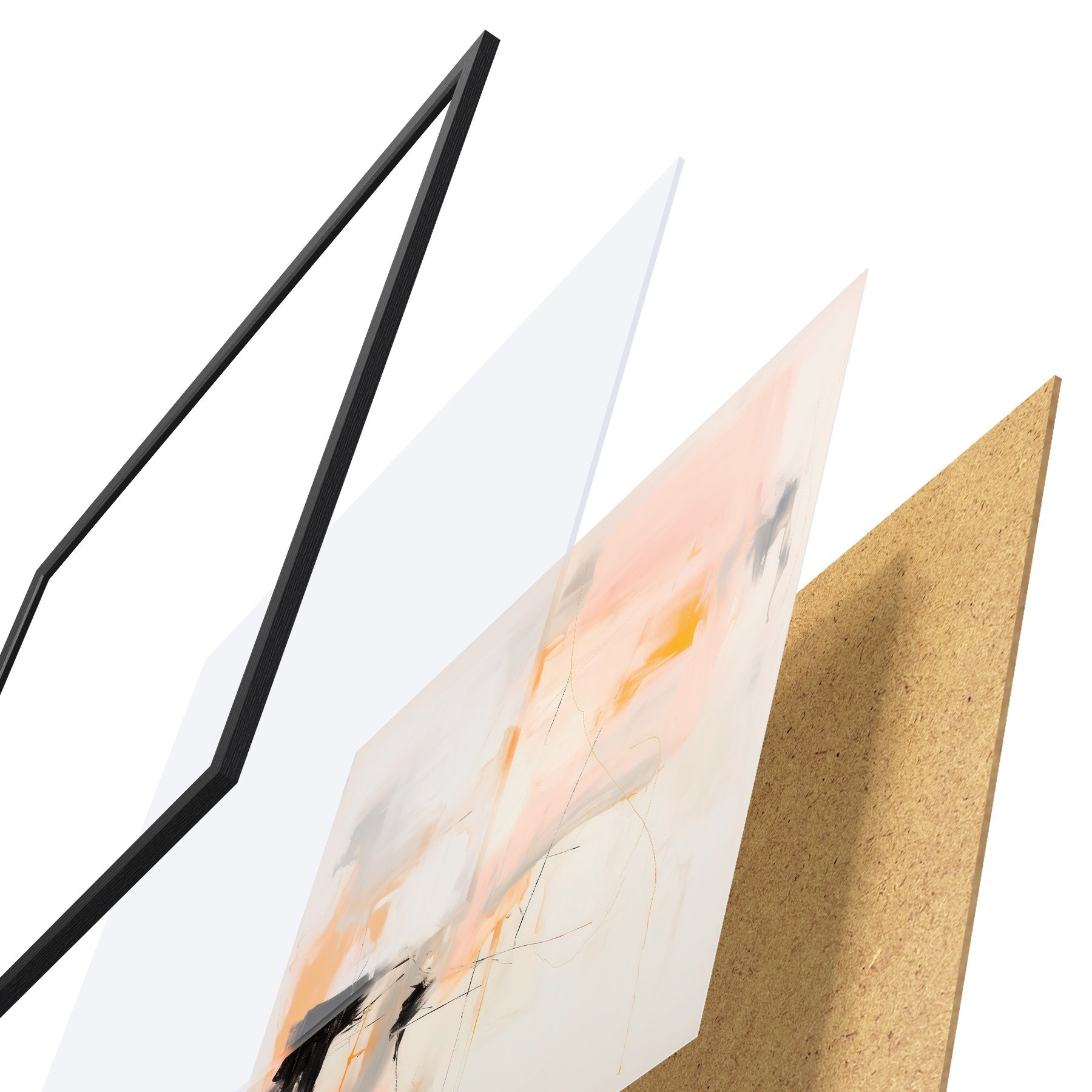 Постер складається з рами, оргскла, надрукованого зображення та підкладки з ДСП. Завдяки кріпленням на звороті плакат можна одразу ж повісити на стіну.