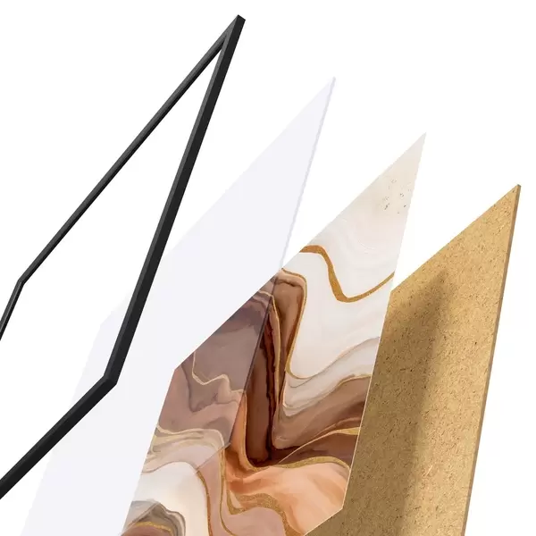 Постер складається з рами, оргскла, надрукованого зображення та підкладки з ДСП. Завдяки кріпленням на звороті плакат можна одразу ж повісити на стіну.