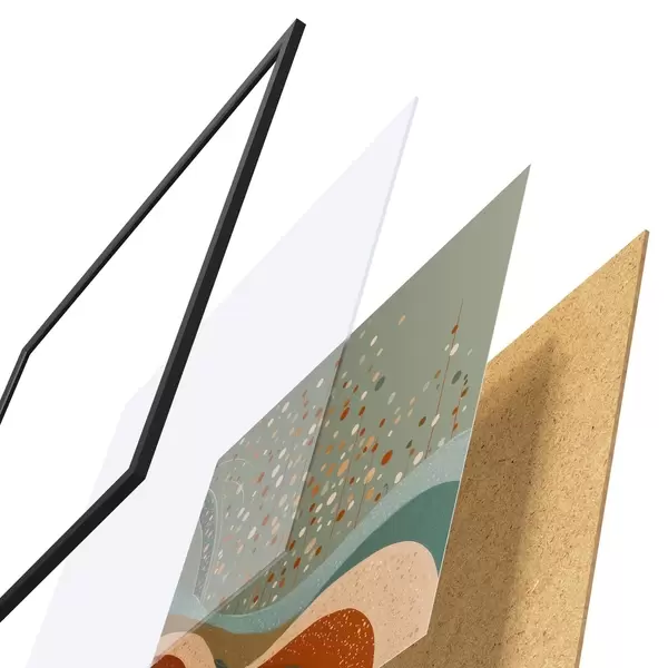 Постер складається з рами, оргскла, надрукованого зображення та підкладки з ДСП. Завдяки кріпленням на звороті плакат можна одразу ж повісити на стіну.