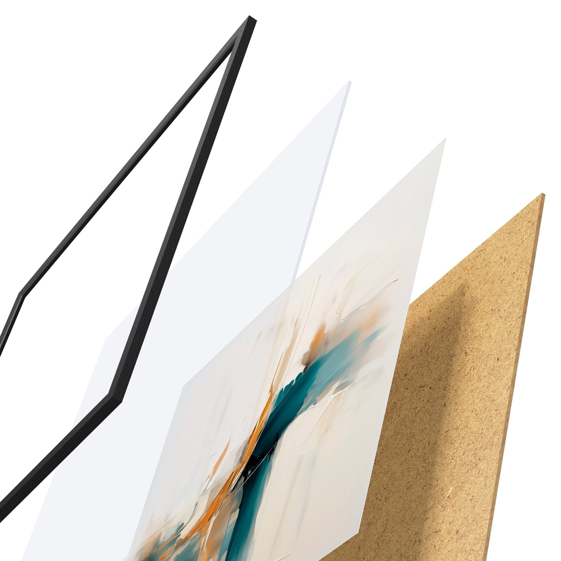 Постер складається з рами, оргскла, надрукованого зображення та підкладки з ДСП. Завдяки кріпленням на звороті плакат можна одразу ж повісити на стіну.