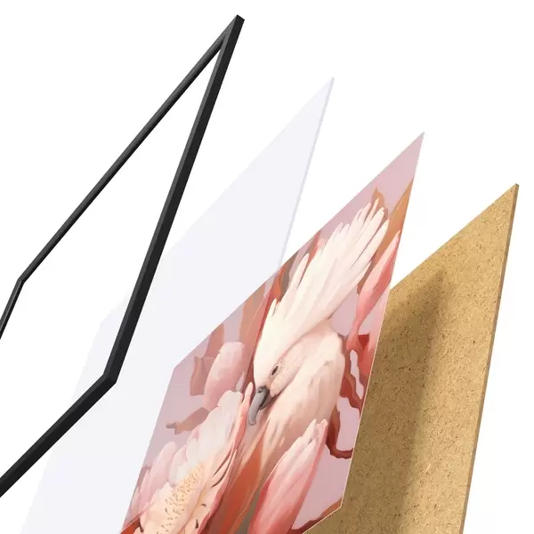 Постер складається з рами, оргскла, надрукованого зображення та підкладки з ДСП. Завдяки кріпленням на звороті плакат можна одразу ж повісити на стіну.