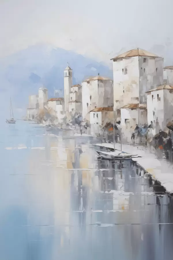 Постер на стіну Абстрактні будинки біля затоки імітація живопису Nr f46673