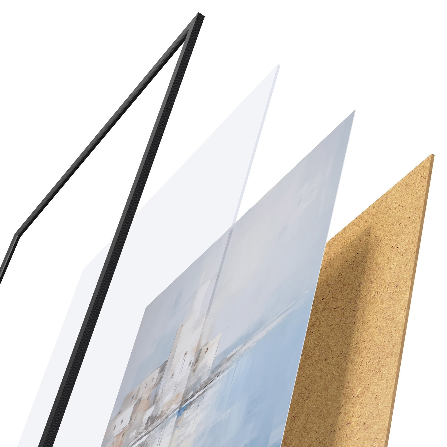 Постер складається з рами, оргскла, надрукованого зображення та підкладки з ДСП. Завдяки кріпленням на звороті плакат можна одразу ж повісити на стіну.