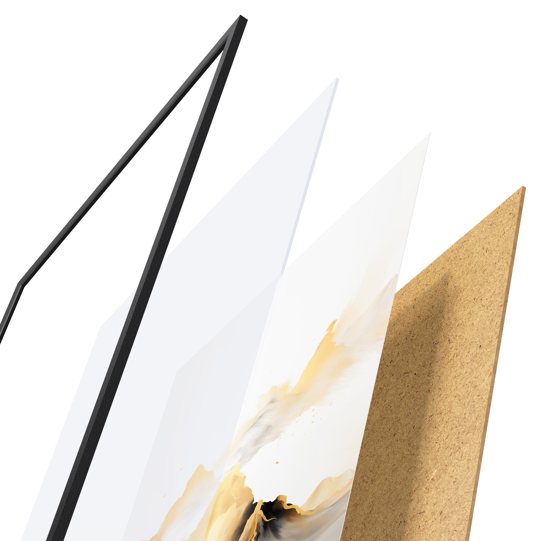 Постер складається з рами, оргскла, надрукованого зображення та підкладки з ДСП. Завдяки кріпленням на звороті плакат можна одразу ж повісити на стіну.