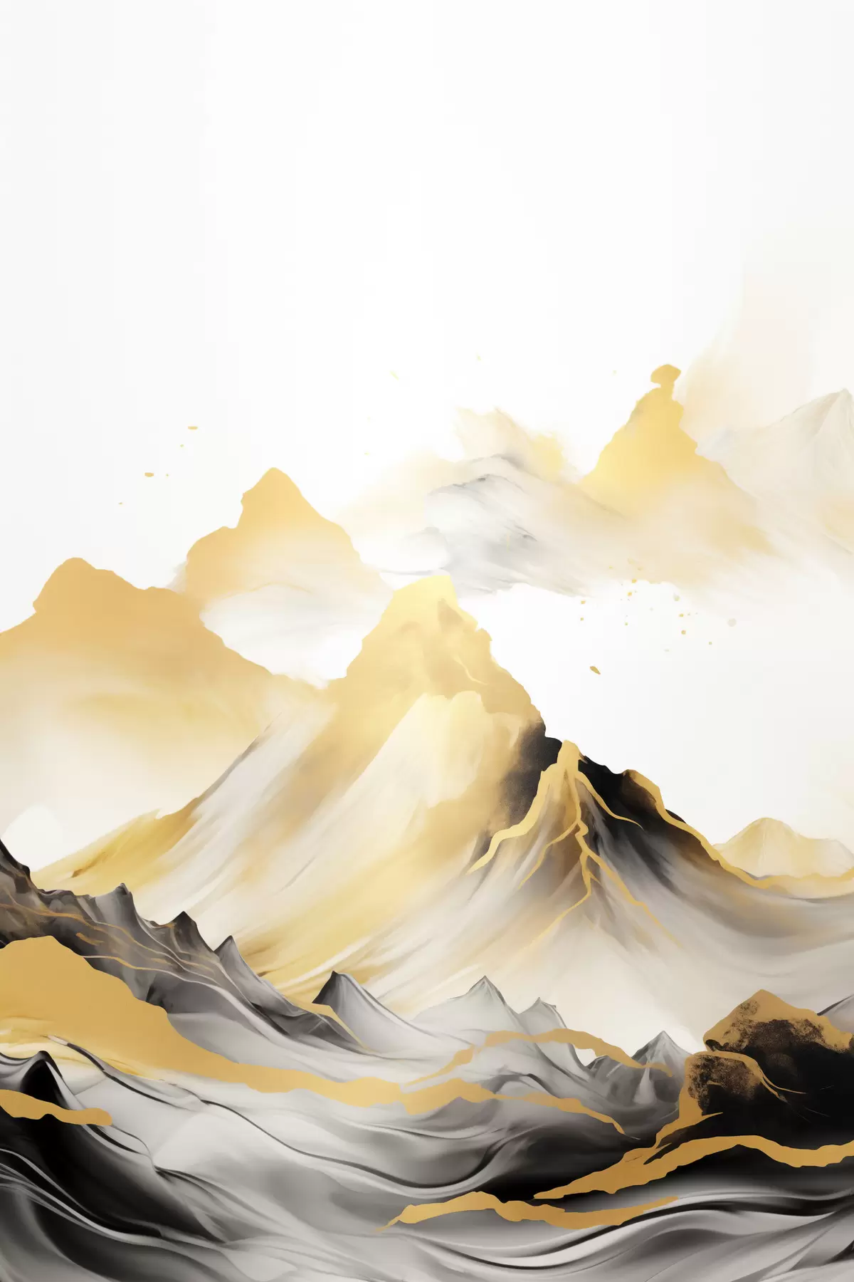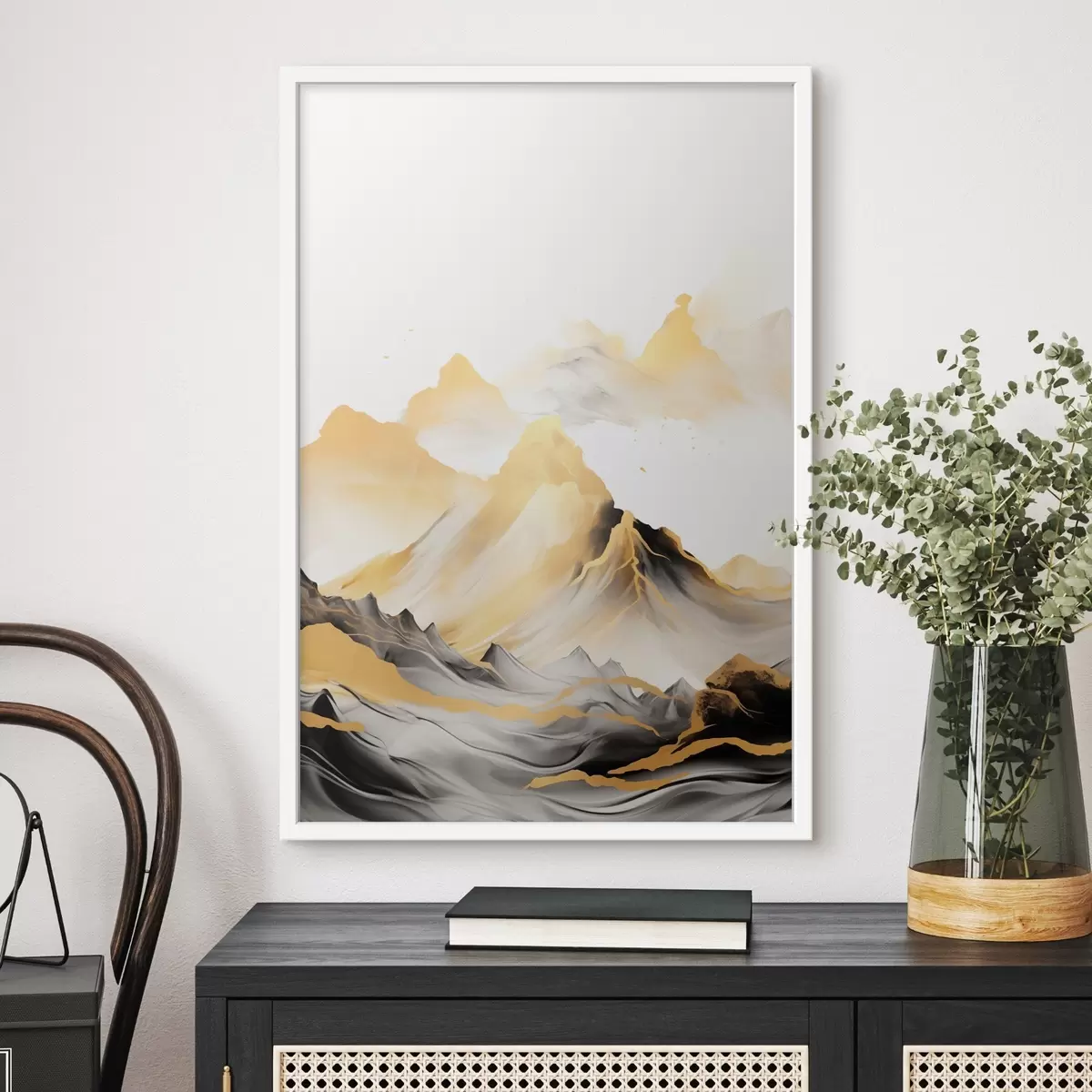 Постер на стіну Текстуровані жовті та чорні гори зі сніговими вершинами, стиль тушового живопису, мінімалістичний гірський хребет Nr f46684