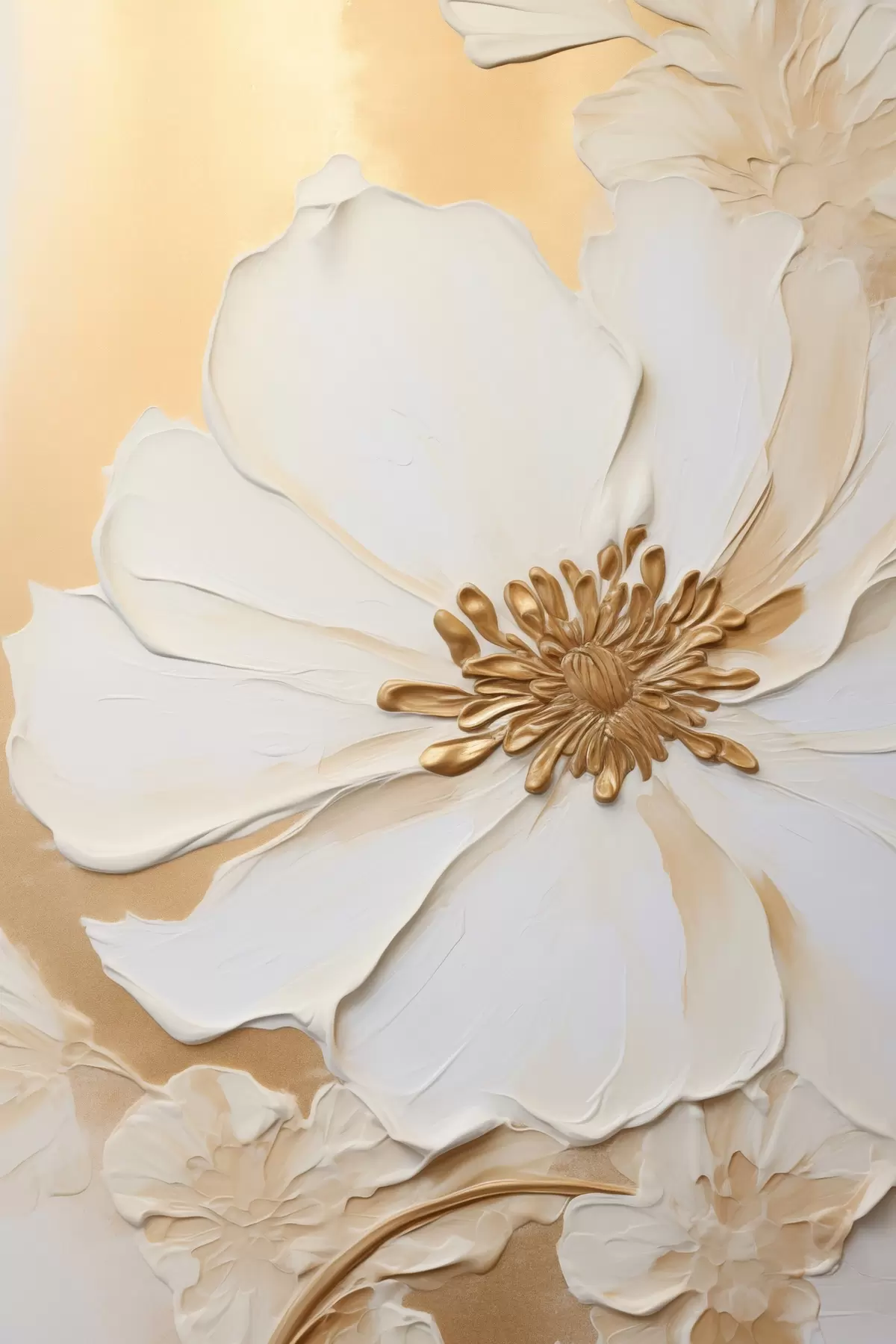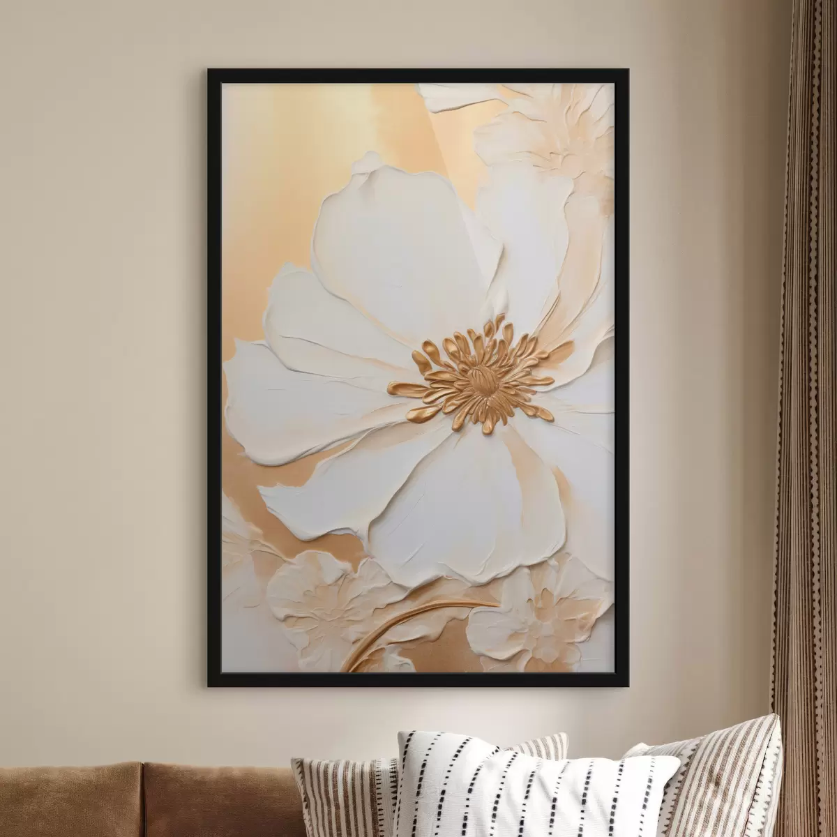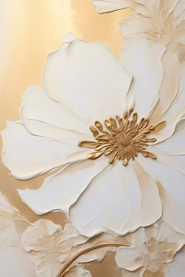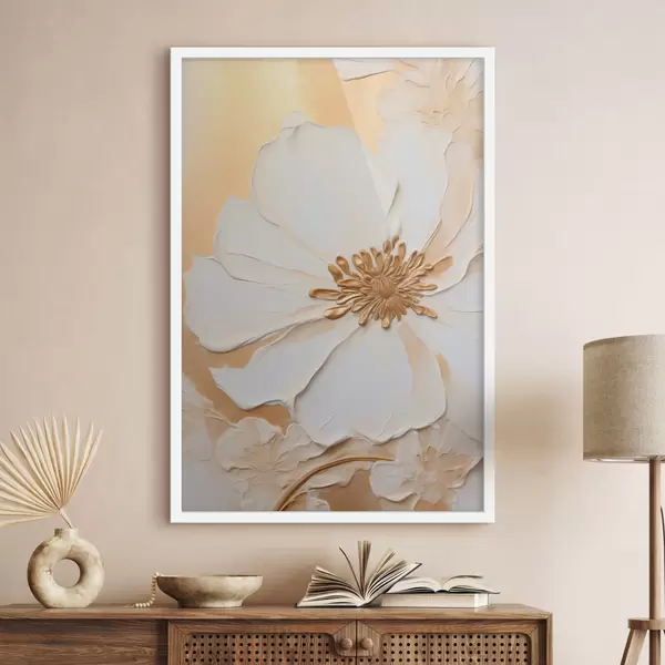 Постер на стіну Біла квітка з ніжними пелюстками, імітованими густими мазками, на світло-помаранчевому текстурованому тлі Nr f46691