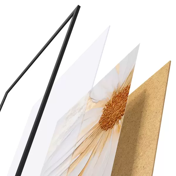 Постер складається з рами, оргскла, надрукованого зображення та підкладки з ДСП. Завдяки кріпленням на звороті плакат можна одразу ж повісити на стіну.
