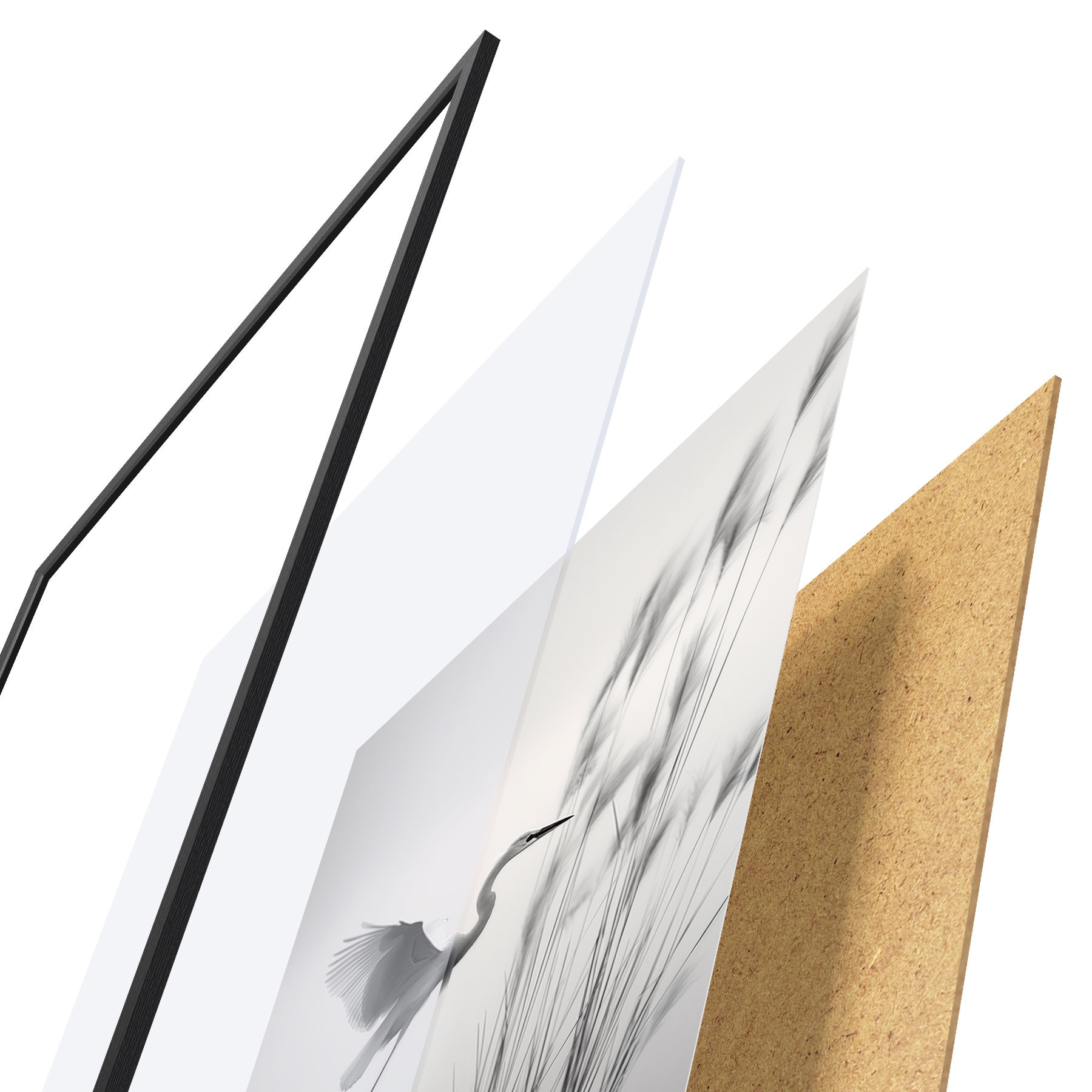 Постер складається з рами, оргскла, надрукованого зображення та підкладки з ДСП. Завдяки кріпленням на звороті плакат можна одразу ж повісити на стіну.