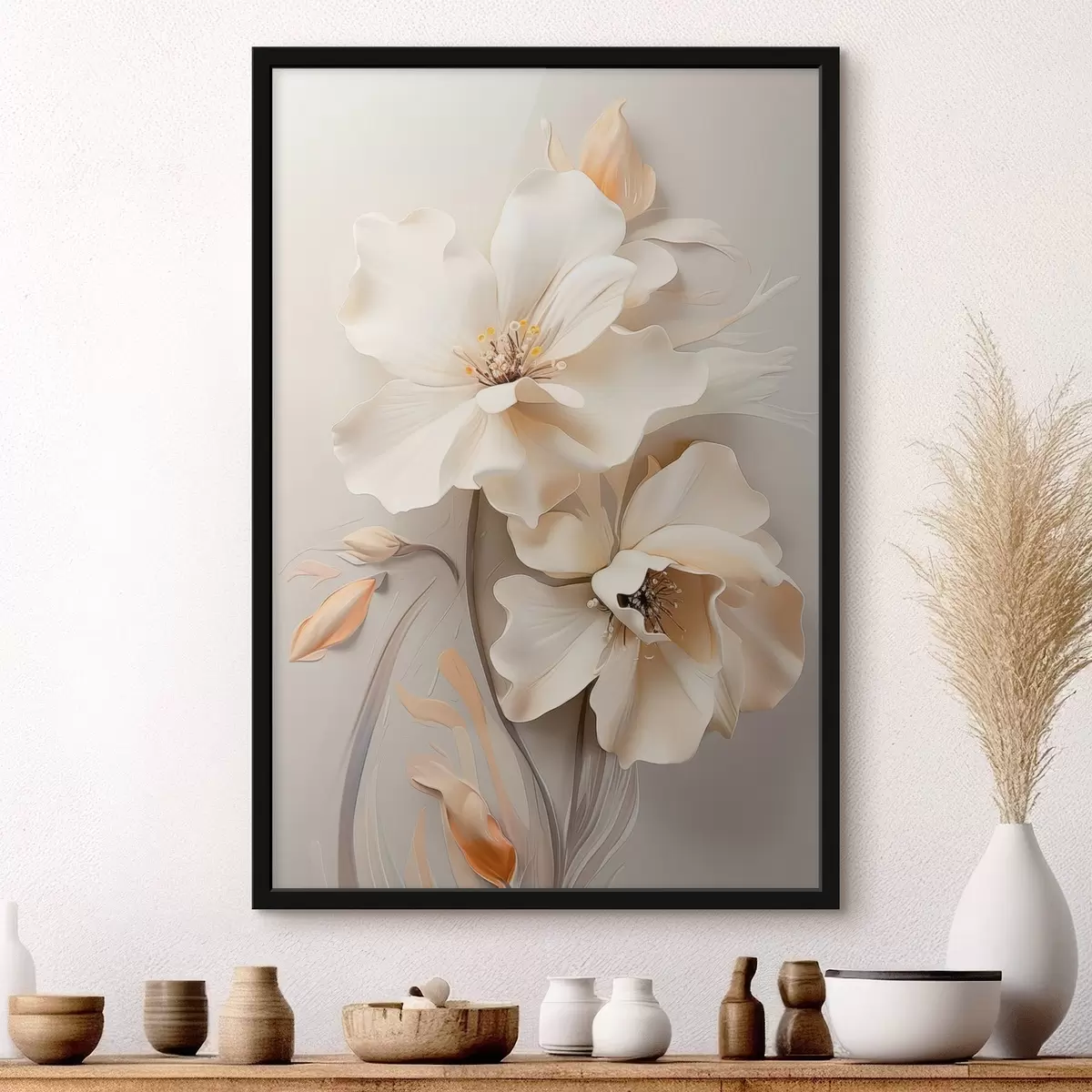 Постер на стіну Білі квіти, пелюстки з м'якими тінями, світло-бежевий фон, елегантна композиція, мінімалістичний стиль Nr f46700