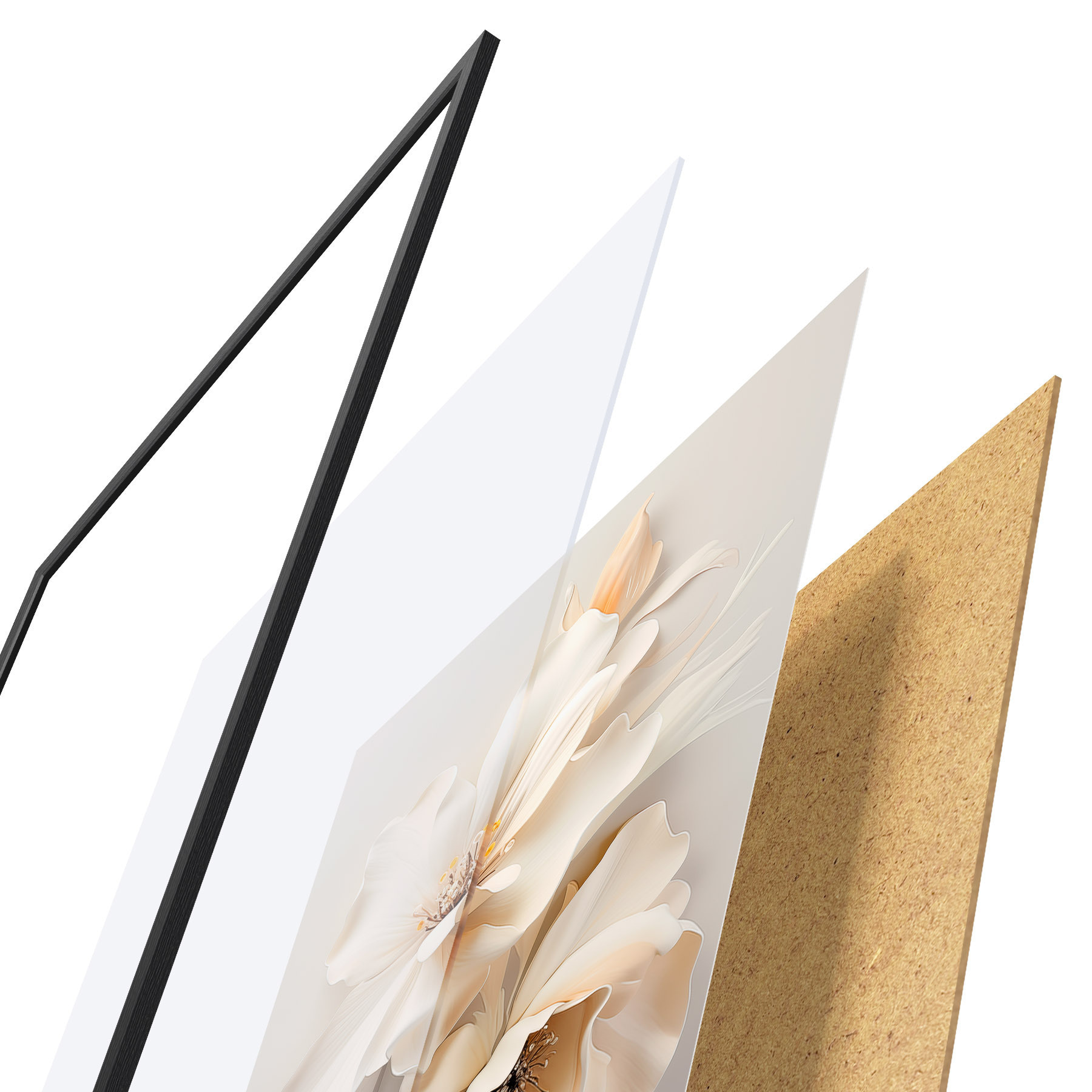 Постер складається з рами, оргскла, надрукованого зображення та підкладки з ДСП. Завдяки кріпленням на звороті плакат можна одразу ж повісити на стіну.