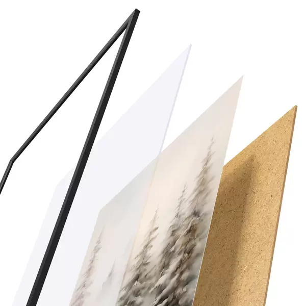Постер складається з рами, оргскла, надрукованого зображення та підкладки з ДСП. Завдяки кріпленням на звороті плакат можна одразу ж повісити на стіну.