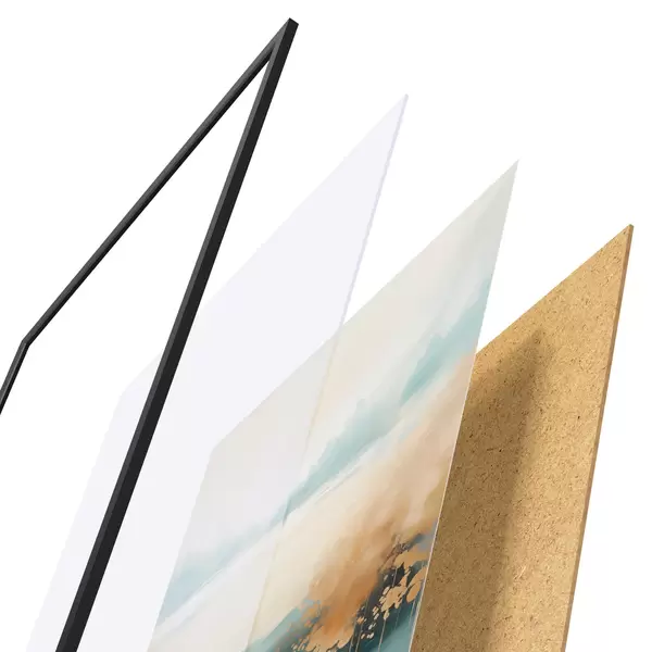 Постер складається з рами, оргскла, надрукованого зображення та підкладки з ДСП. Завдяки кріпленням на звороті плакат можна одразу ж повісити на стіну.