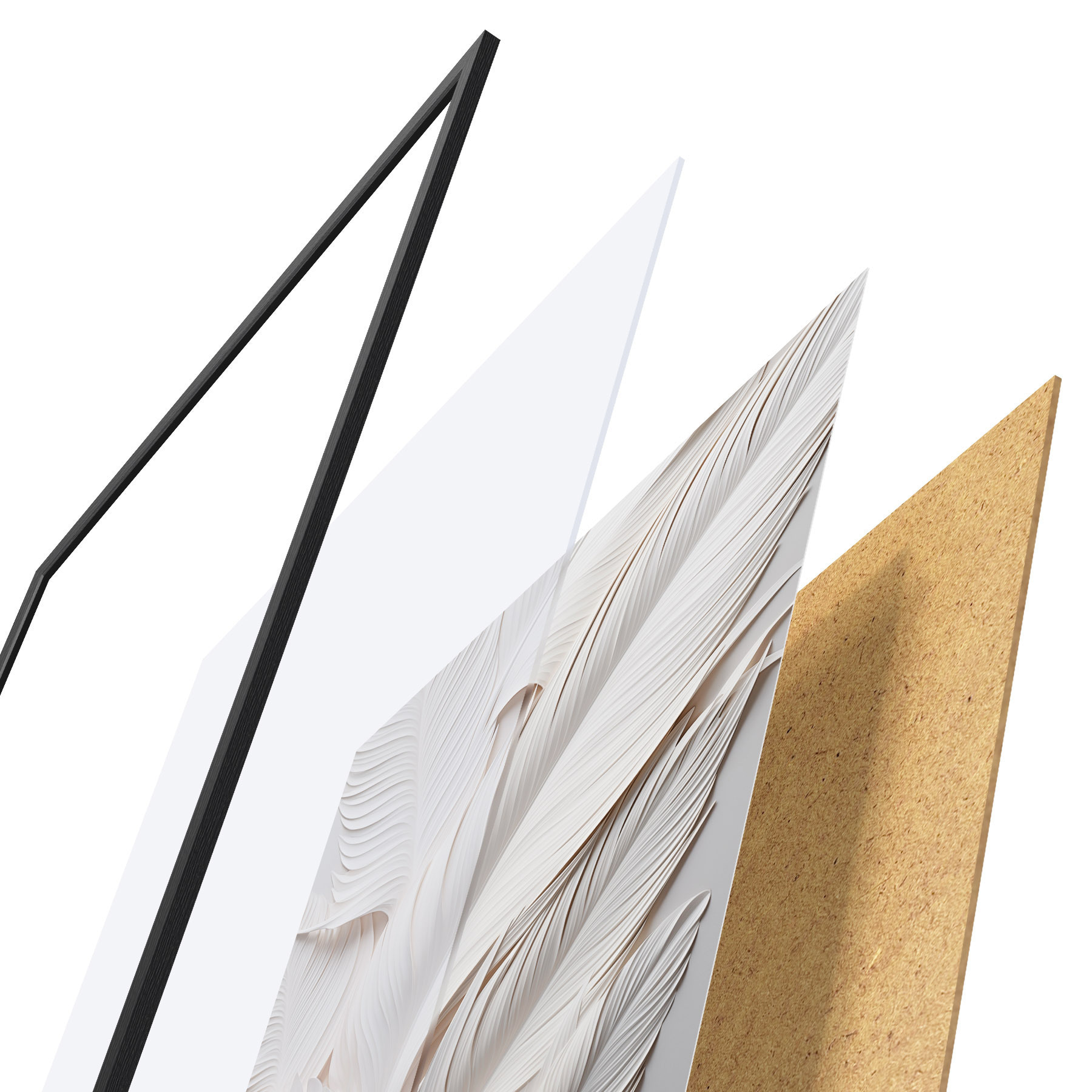 Постер складається з рами, оргскла, надрукованого зображення та підкладки з ДСП. Завдяки кріпленням на звороті плакат можна одразу ж повісити на стіну.