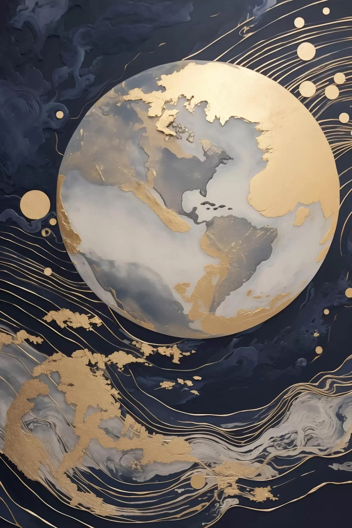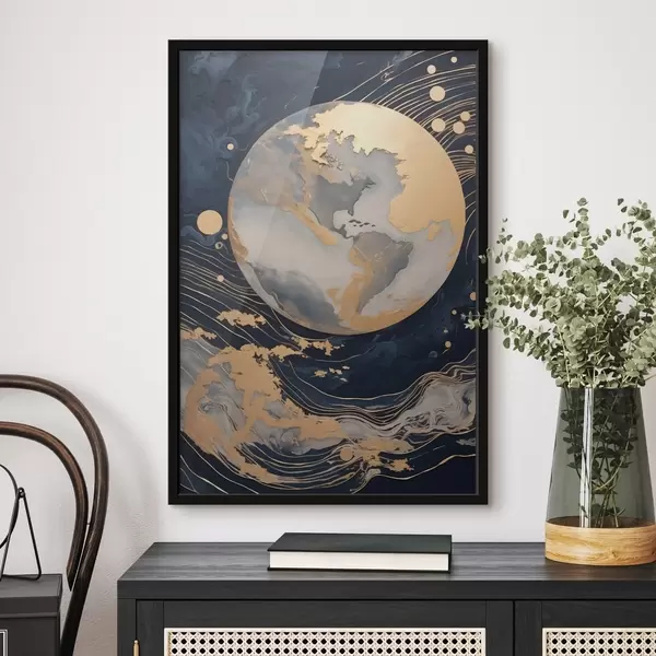 Постер на стіну Текстурована декоративна планета з жовтими лініями на тлі, жовті крапки на тлі, темний фон Nr f46708