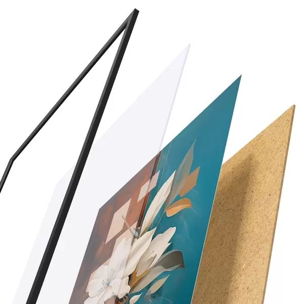 Постер складається з рами, оргскла, надрукованого зображення та підкладки з ДСП. Завдяки кріпленням на звороті плакат можна одразу ж повісити на стіну.