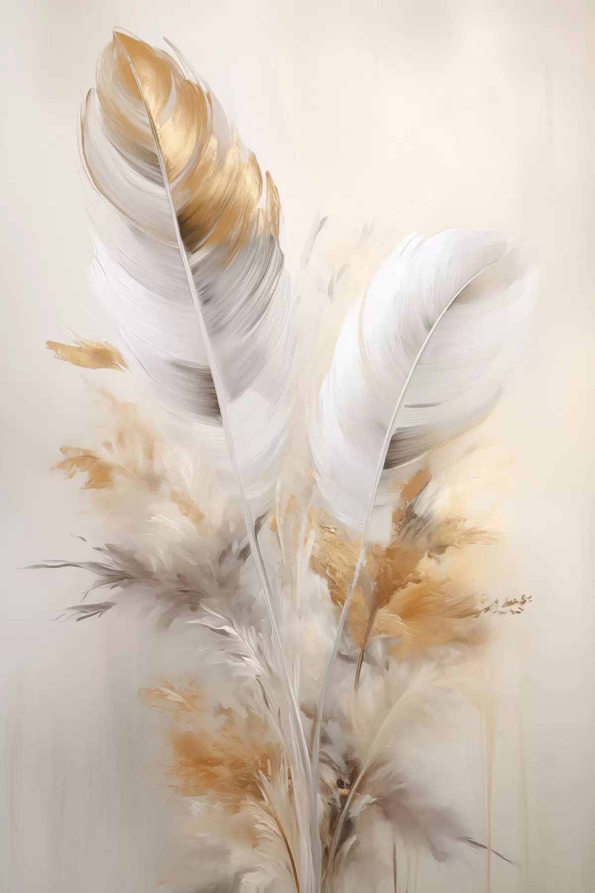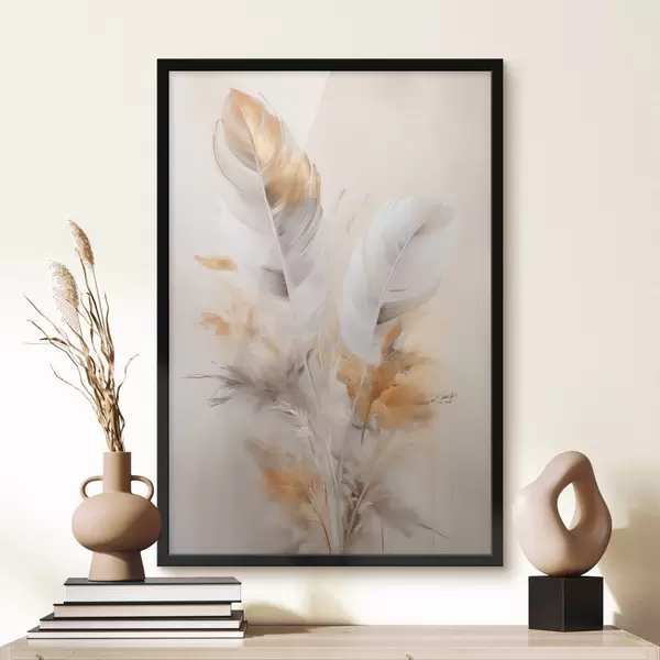 Постер на стіну Абстрактні пір'я, оточені бежевими та коричневими пучками, м'які та ніжні, на світло-бежевому тлі Nr f46711