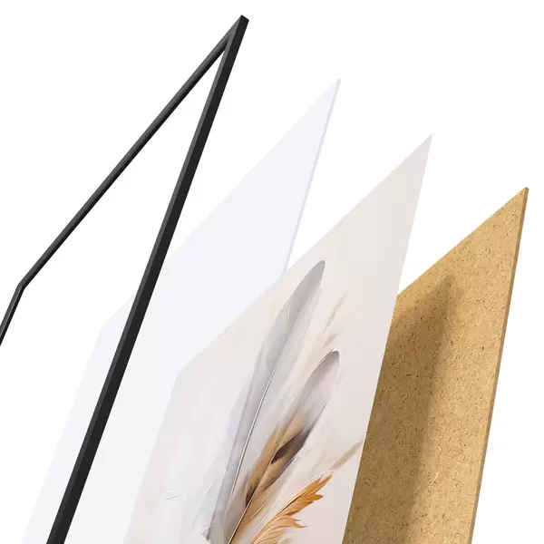 Постер складається з рами, оргскла, надрукованого зображення та підкладки з ДСП. Завдяки кріпленням на звороті плакат можна одразу ж повісити на стіну.