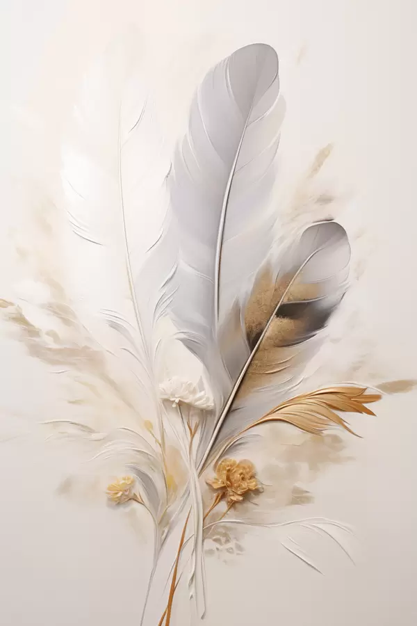Постер на стіну Абстрактні пір'я, оточені бежевими та коричневими пучками, м'які та ніжні, на світло-бежевому тлі Nr f46712