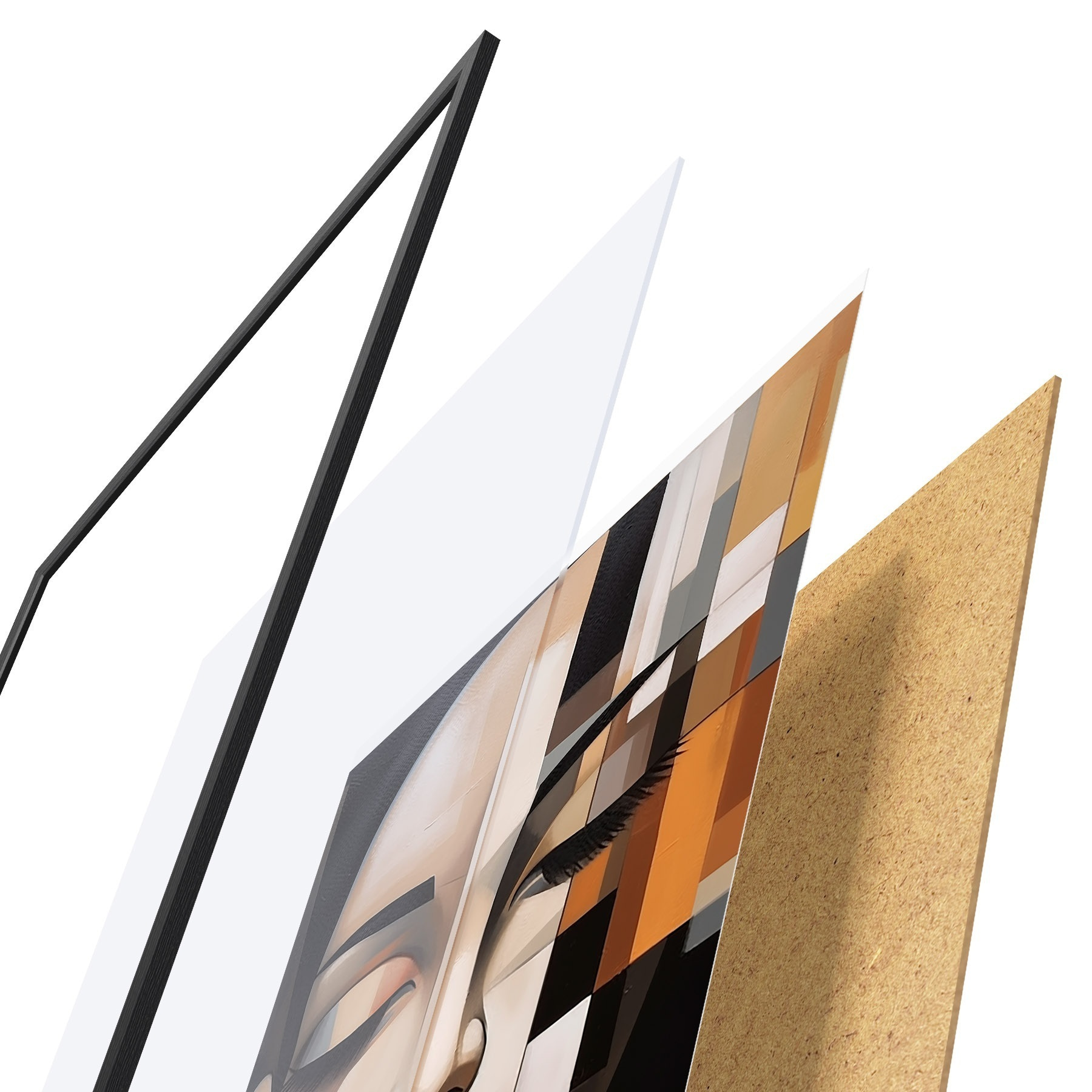 Постер складається з рами, оргскла, надрукованого зображення та підкладки з ДСП. Завдяки кріпленням на звороті плакат можна одразу ж повісити на стіну.