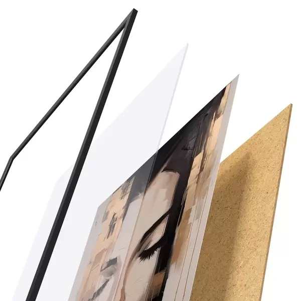 Постер складається з рами, оргскла, надрукованого зображення та підкладки з ДСП. Завдяки кріпленням на звороті плакат можна одразу ж повісити на стіну.
