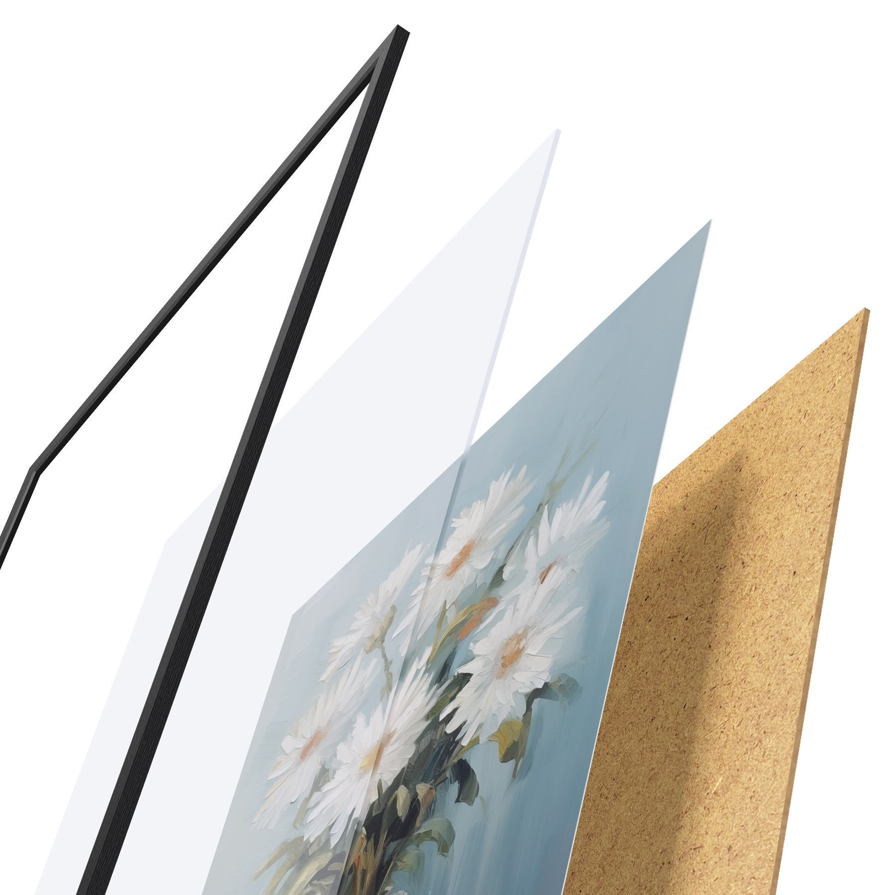 Постер складається з рами, оргскла, надрукованого зображення та підкладки з ДСП. Завдяки кріпленням на звороті плакат можна одразу ж повісити на стіну.