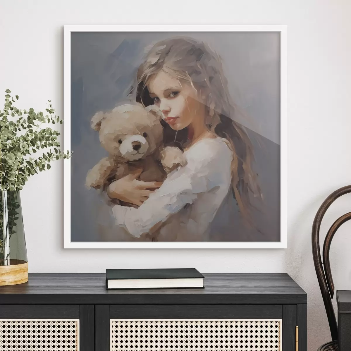 Постер на стіну Дівчинка з іграшковим ведмедиком, імітація картини Nr f46746