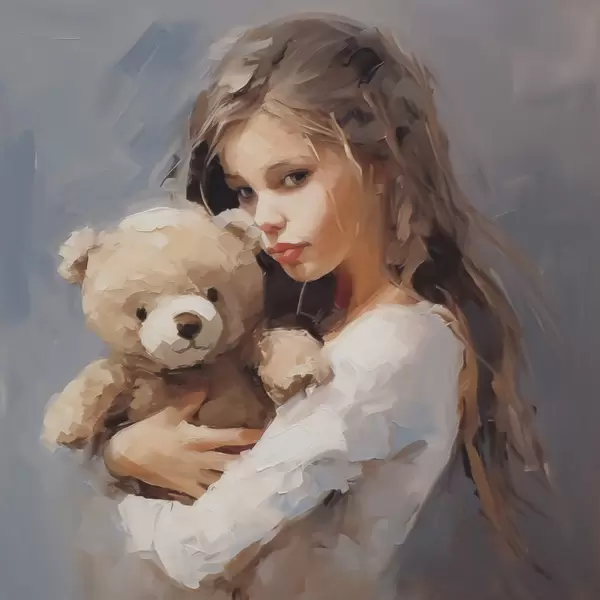 Постер на стіну Дівчинка з іграшковим ведмедиком, імітація картини Nr f46746