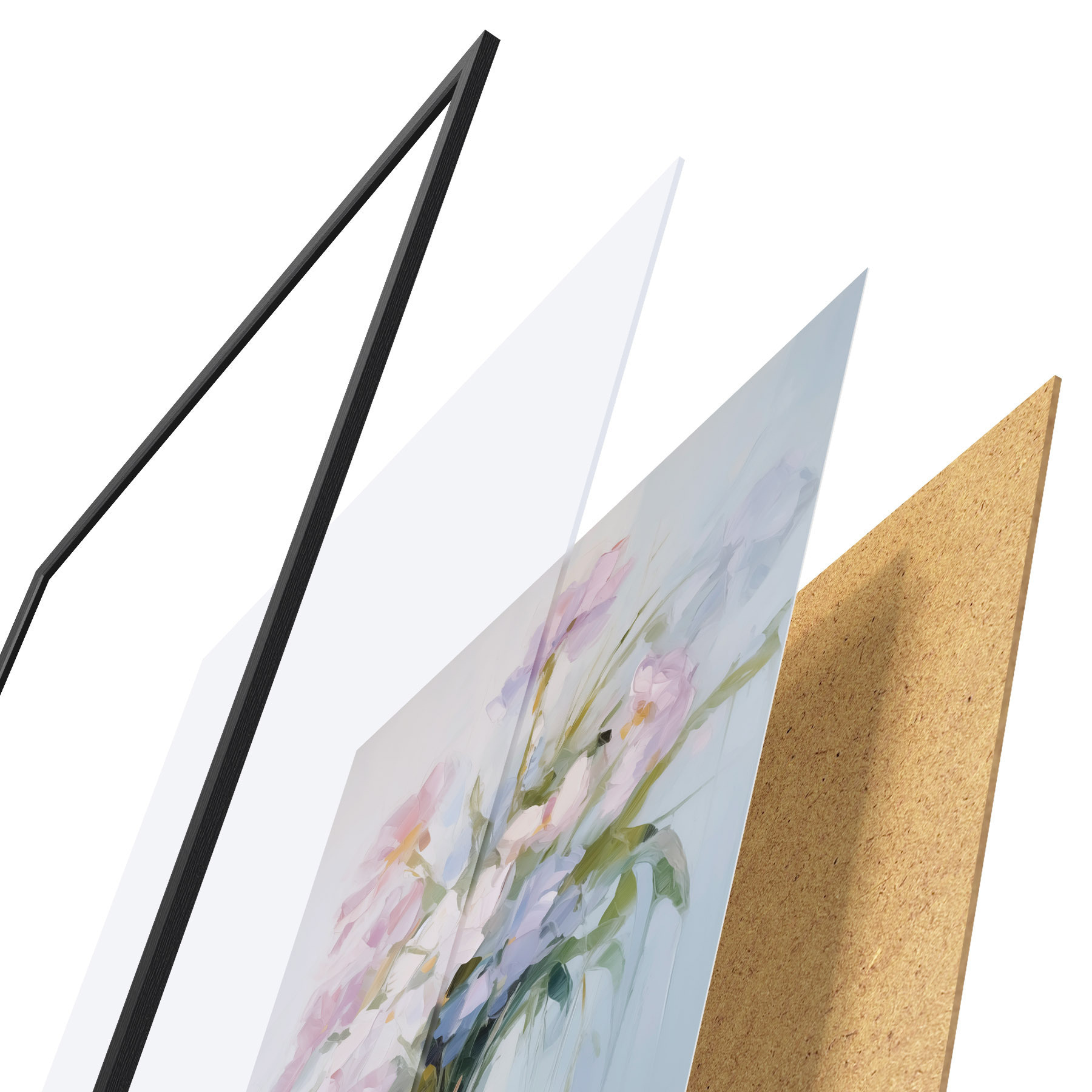 Постер складається з рами, оргскла, надрукованого зображення та підкладки з ДСП. Завдяки кріпленням на звороті плакат можна одразу ж повісити на стіну.