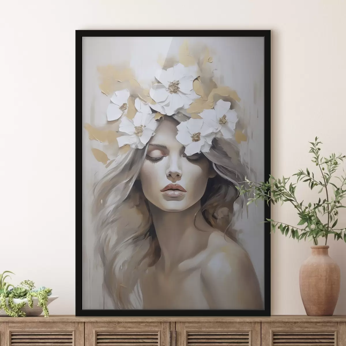 Постер на стіну Абстрактний портрет дівчини з квітами Nr f46757