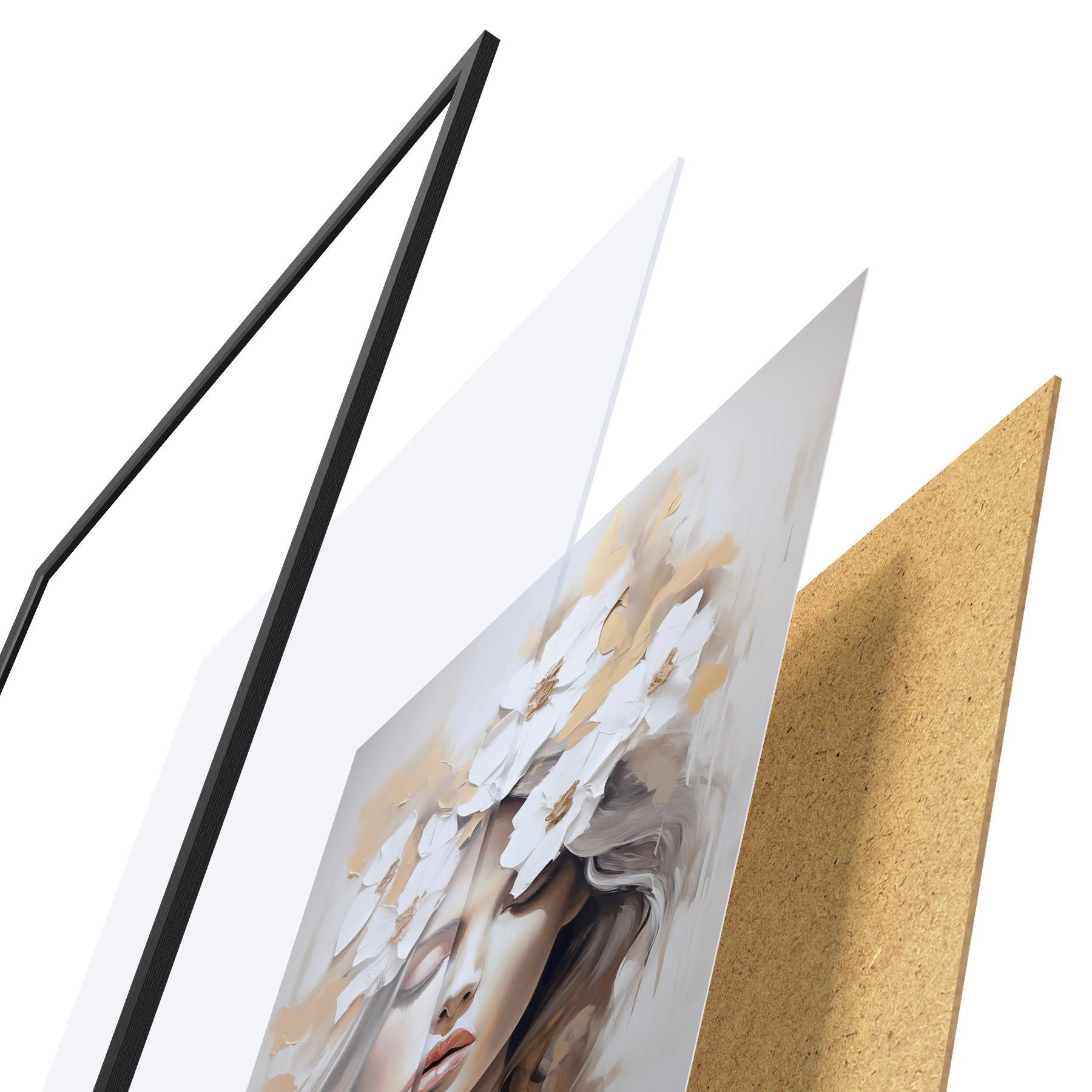 Постер складається з рами, оргскла, надрукованого зображення та підкладки з ДСП. Завдяки кріпленням на звороті плакат можна одразу ж повісити на стіну.