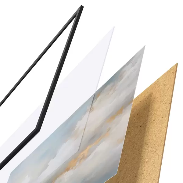 Постер складається з рами, оргскла, надрукованого зображення та підкладки з ДСП. Завдяки кріпленням на звороті плакат можна одразу ж повісити на стіну.