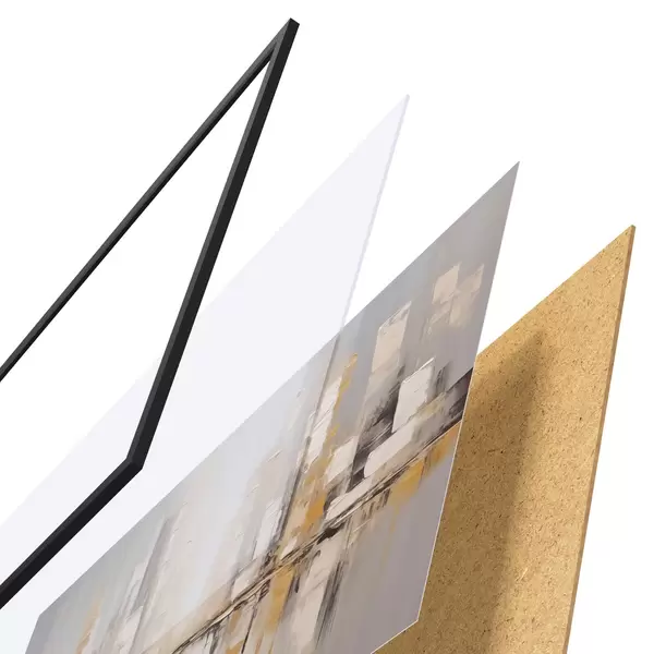 Постер складається з рами, оргскла, надрукованого зображення та підкладки з ДСП. Завдяки кріпленням на звороті плакат можна одразу ж повісити на стіну.