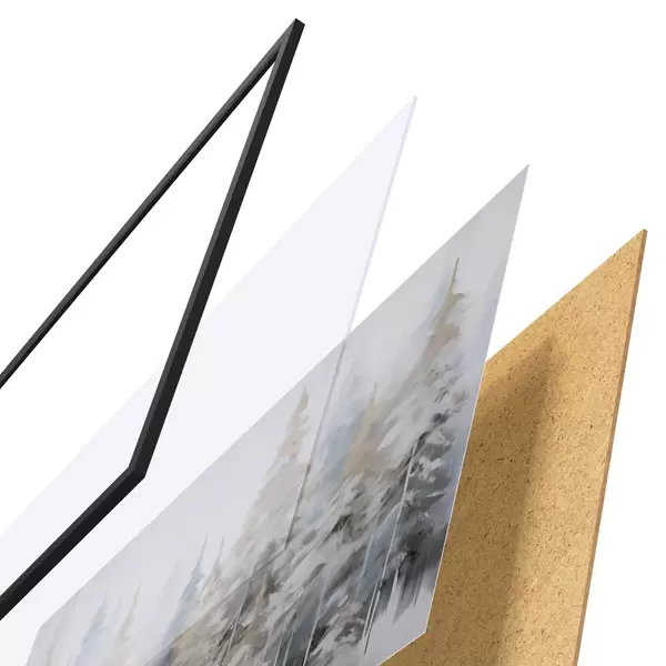 Постер складається з рами, оргскла, надрукованого зображення та підкладки з ДСП. Завдяки кріпленням на звороті плакат можна одразу ж повісити на стіну.