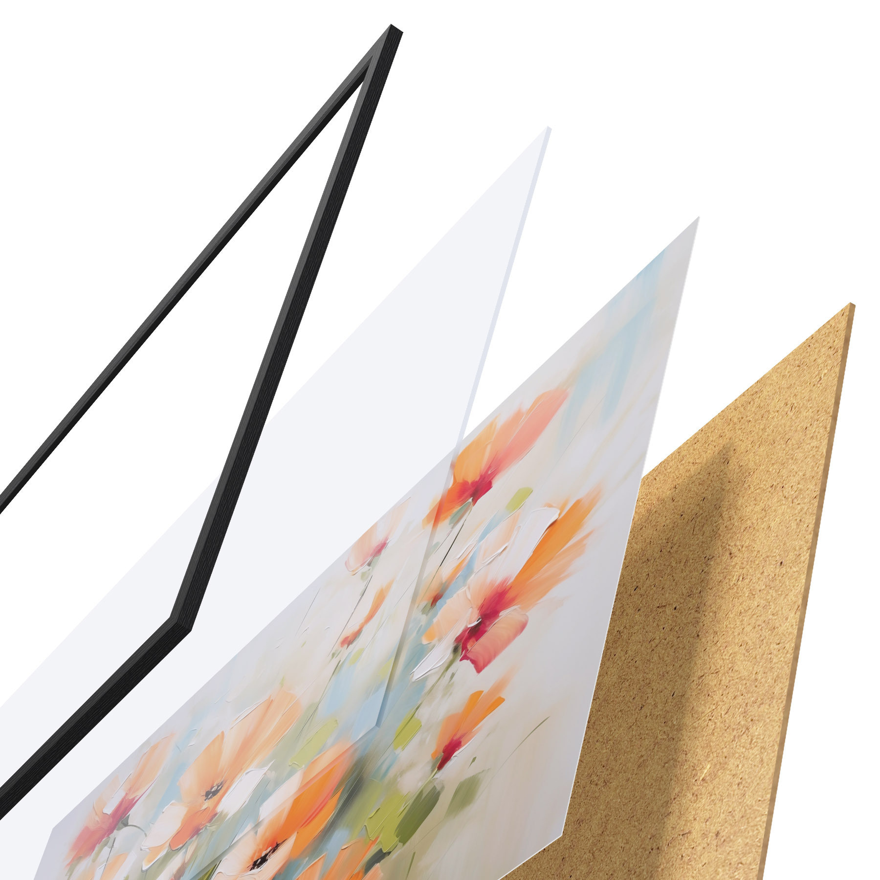 Постер складається з рами, оргскла, надрукованого зображення та підкладки з ДСП. Завдяки кріпленням на звороті плакат можна одразу ж повісити на стіну.