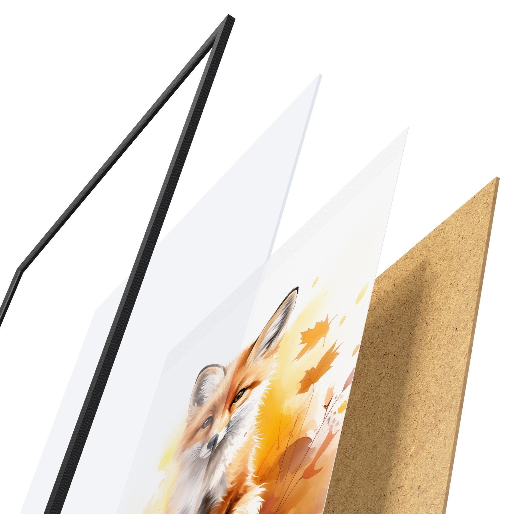 Постер складається з рами, оргскла, надрукованого зображення та підкладки з ДСП. Завдяки кріпленням на звороті плакат можна одразу ж повісити на стіну.