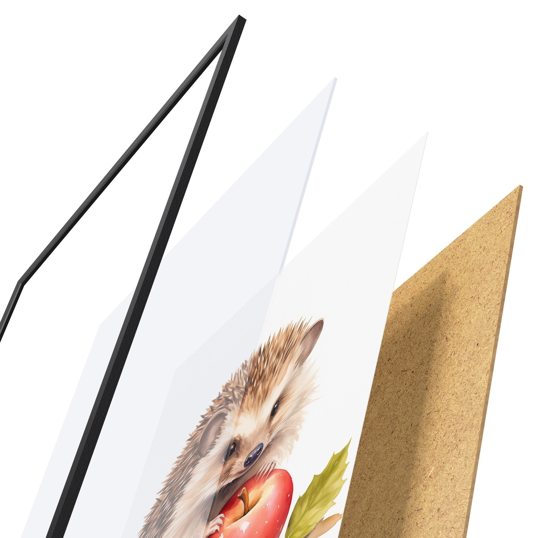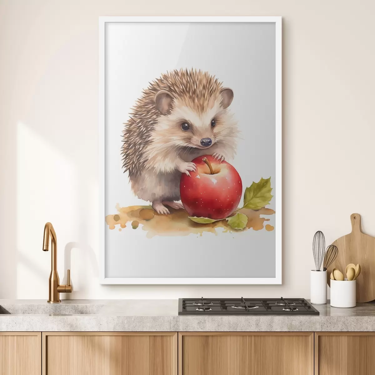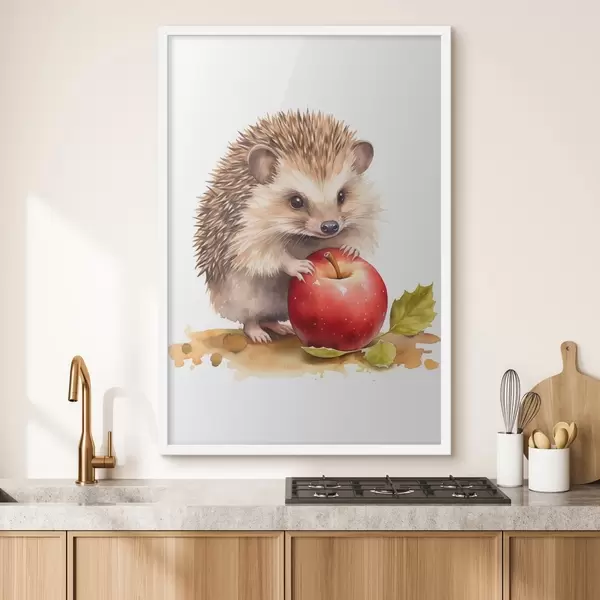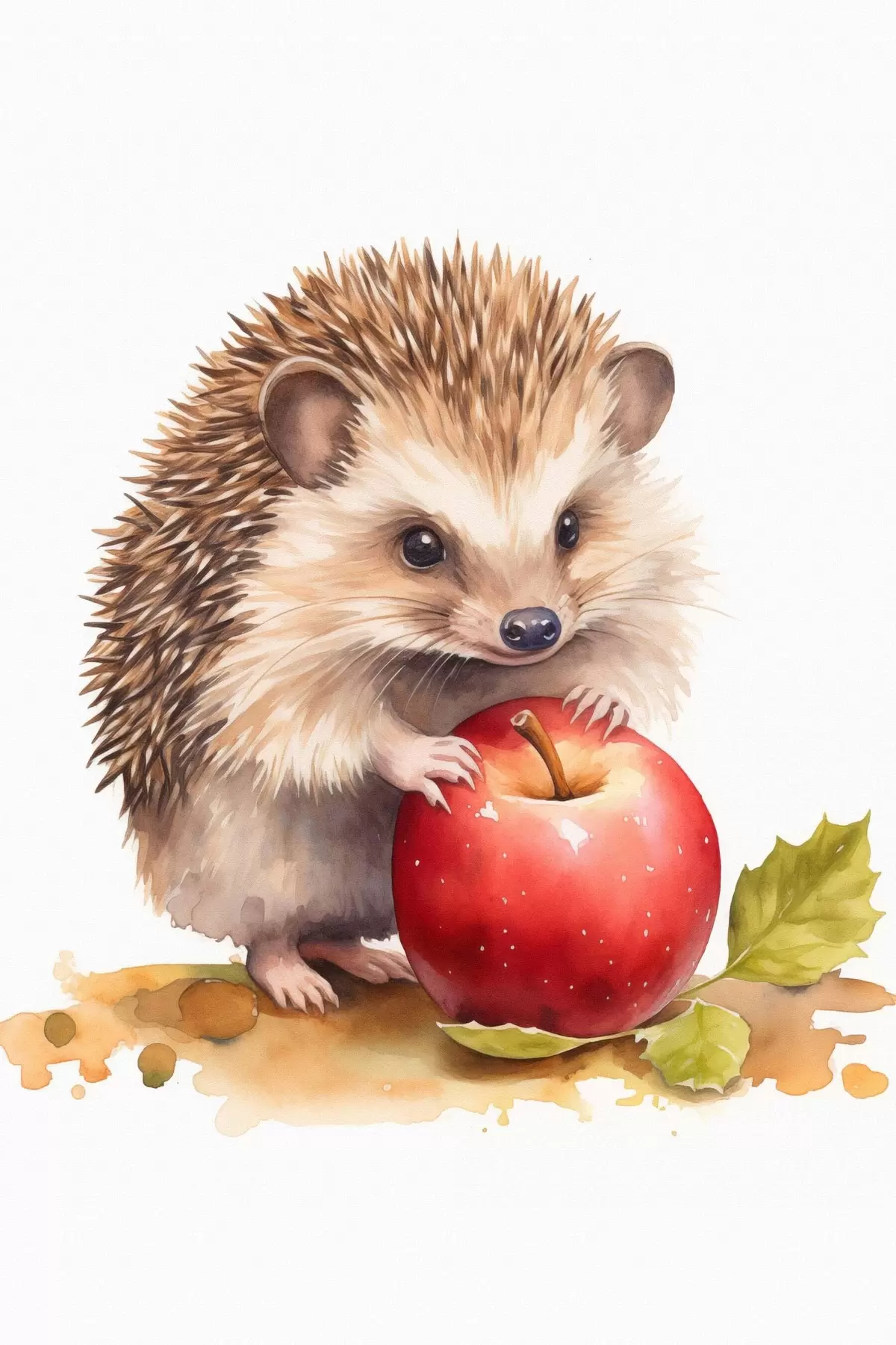 Постер на стіну Їжак і яблуко, імітація акварелі Nr f46769