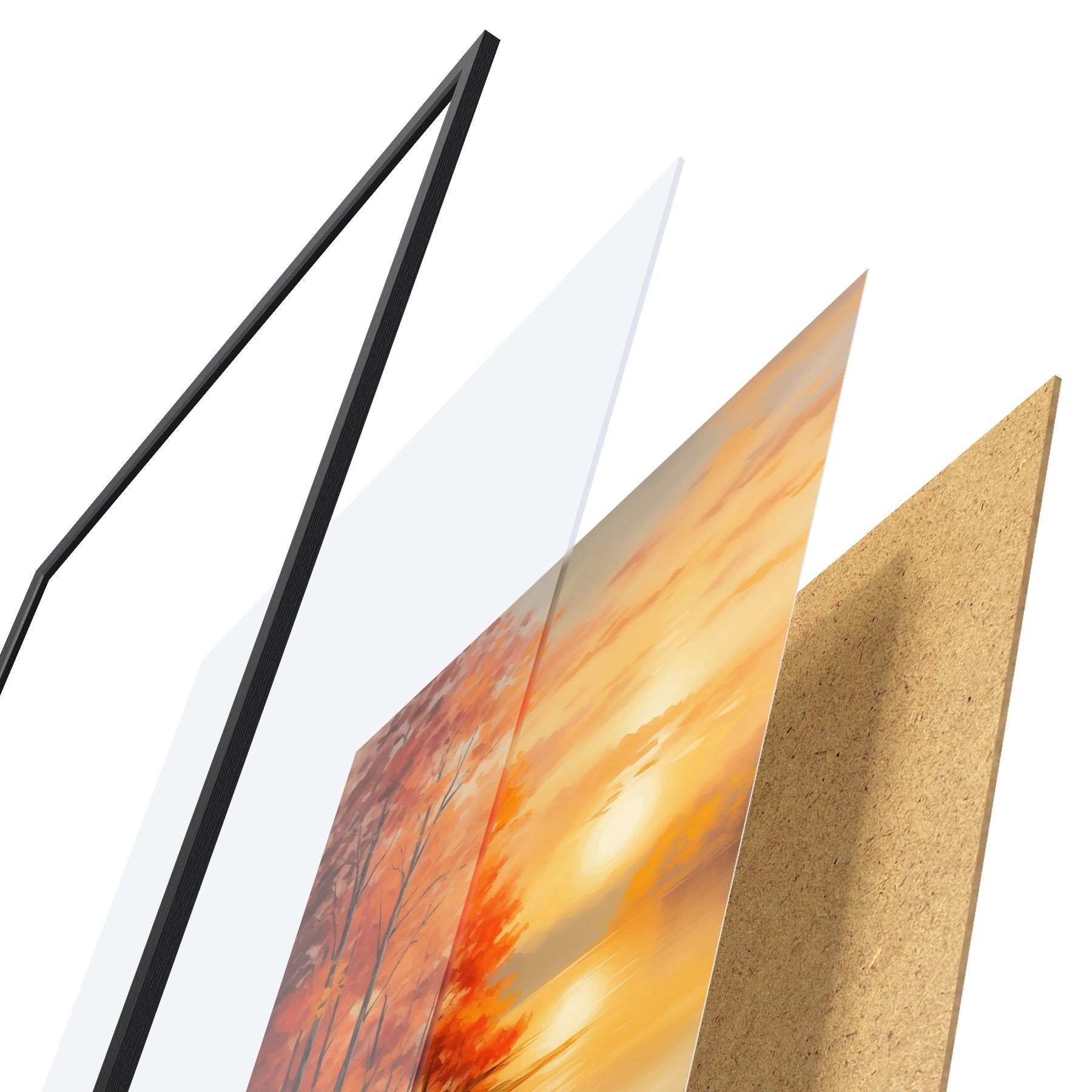 Постер складається з рами, оргскла, надрукованого зображення та підкладки з ДСП. Завдяки кріпленням на звороті плакат можна одразу ж повісити на стіну.