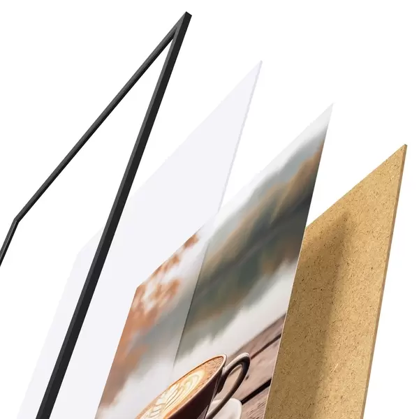 Постер складається з рами, оргскла, надрукованого зображення та підкладки з ДСП. Завдяки кріпленням на звороті плакат можна одразу ж повісити на стіну.