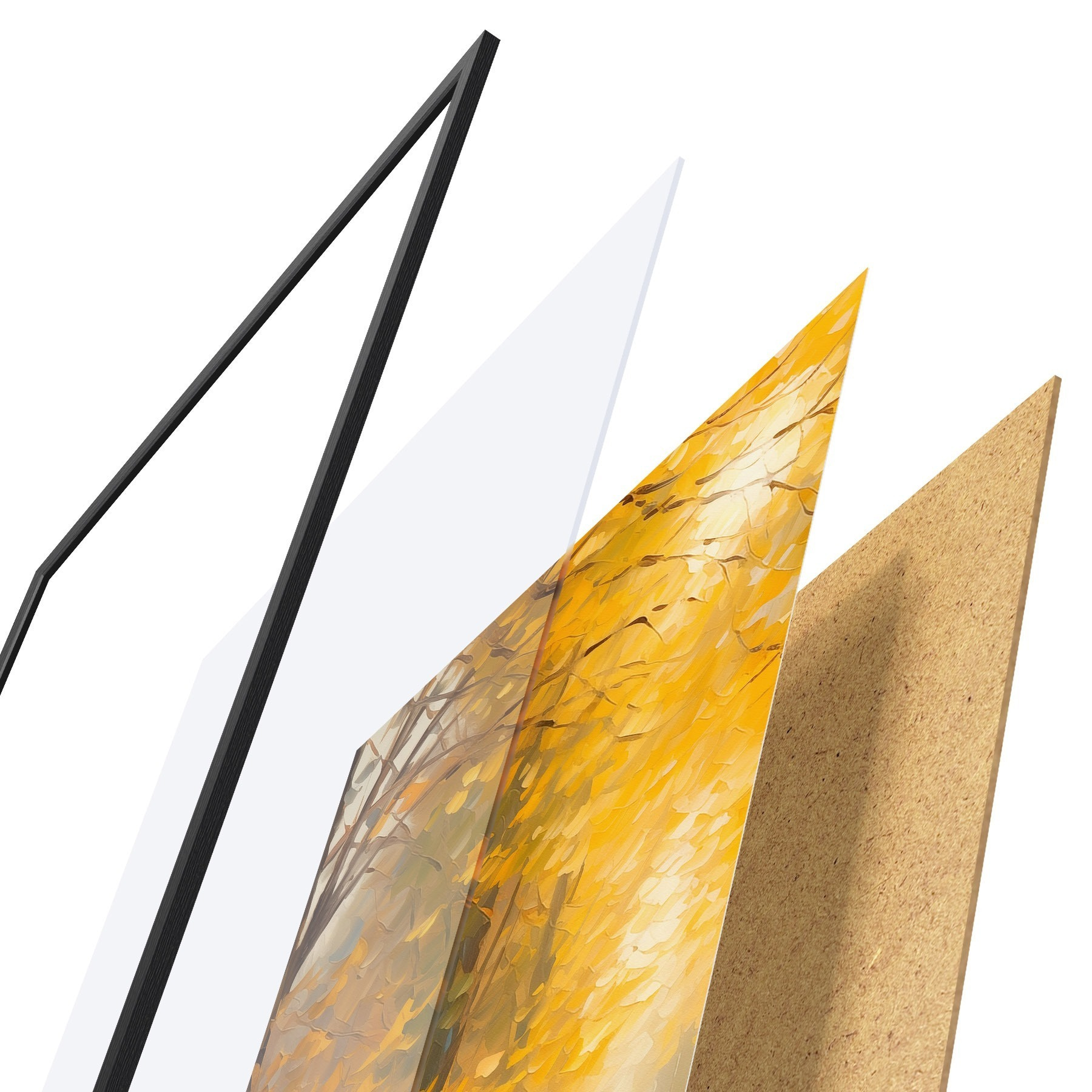 Постер складається з рами, оргскла, надрукованого зображення та підкладки з ДСП. Завдяки кріпленням на звороті плакат можна одразу ж повісити на стіну.