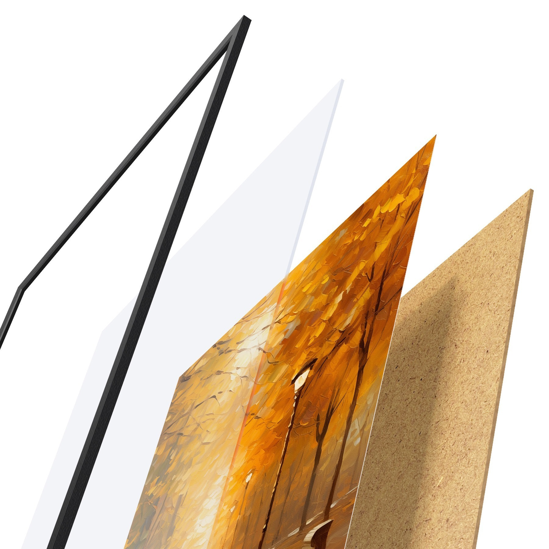 Постер складається з рами, оргскла, надрукованого зображення та підкладки з ДСП. Завдяки кріпленням на звороті плакат можна одразу ж повісити на стіну.